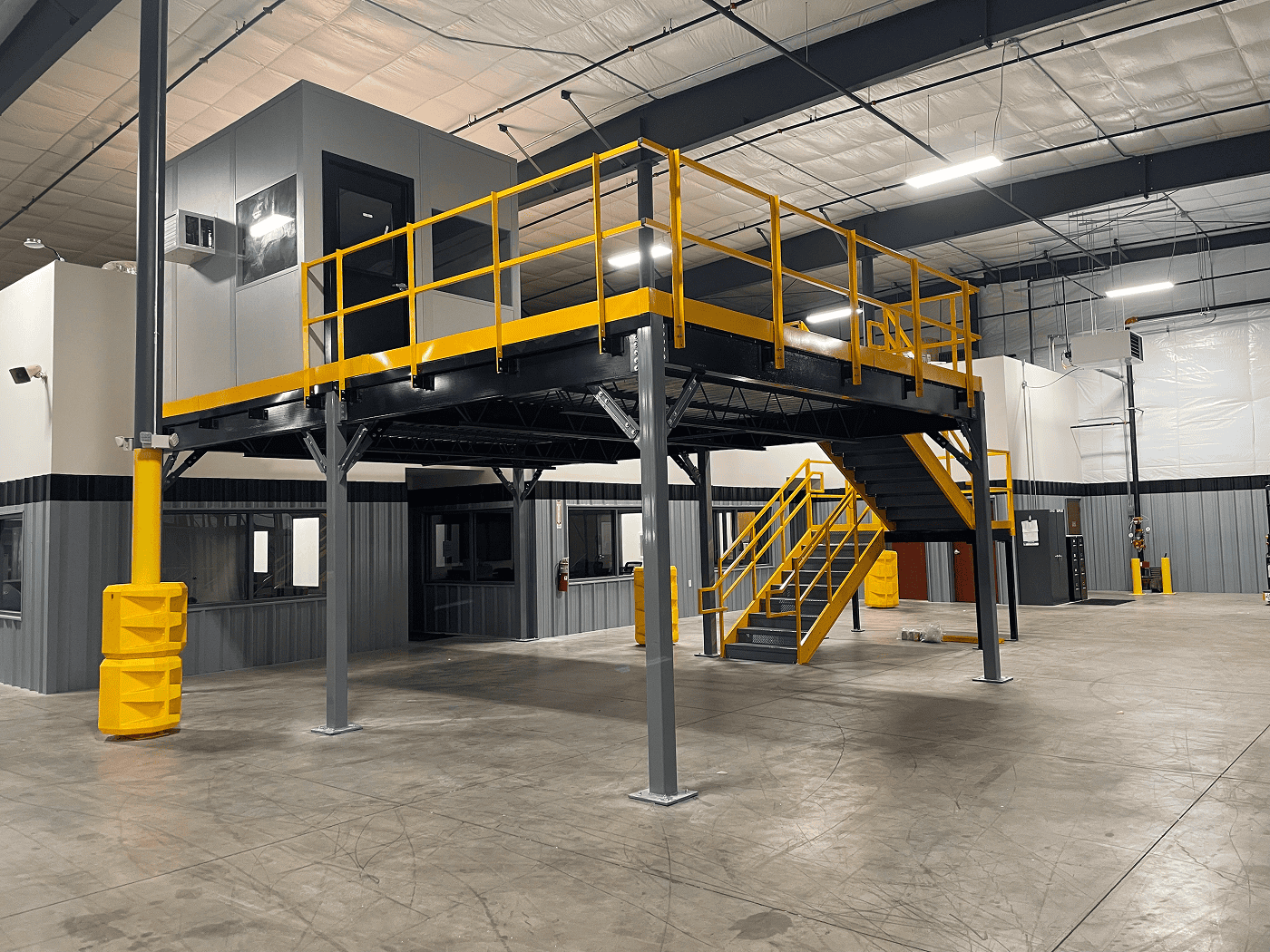 A freestanding mezzanine is a great way to increase your manufacturing and storage capacity fast – without incurring costly renovations or moving to a new facility. Whether you need a little or a lot more floor space, Sync can custom design a mezzanine to fit your application and budget. Faster than you ever imagined possible, we can build an industrial strength mezzanine around the existing layout of your facility, matching any exact height, area and load requirements.