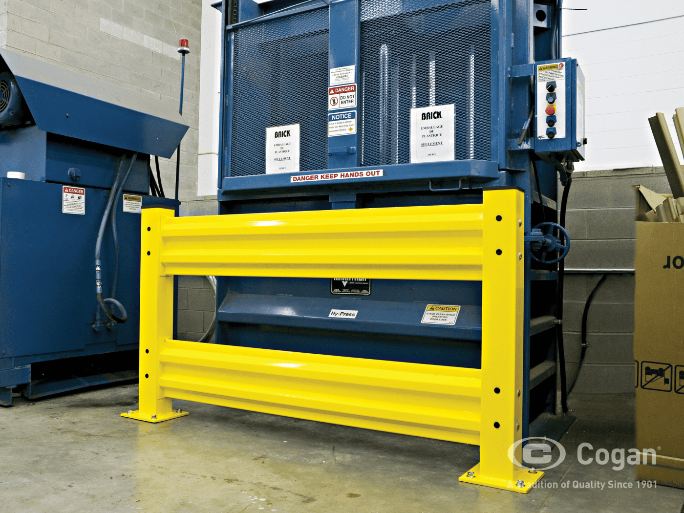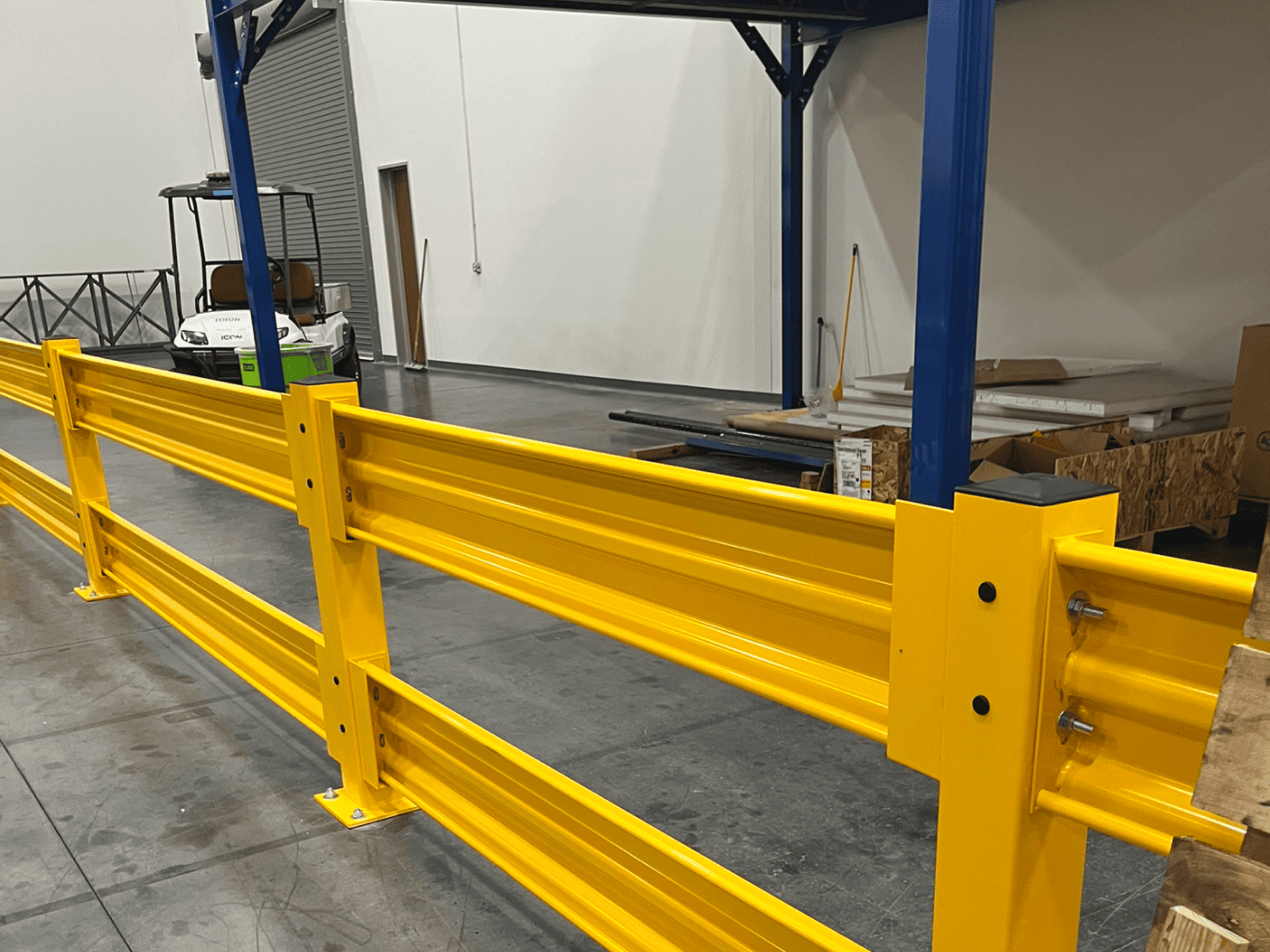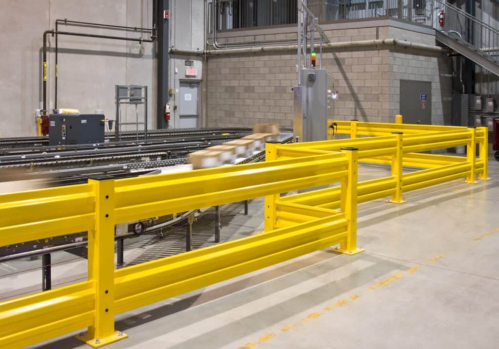 Impact-resistant, heavy-duty guardrail protects people and property from collision accidents.