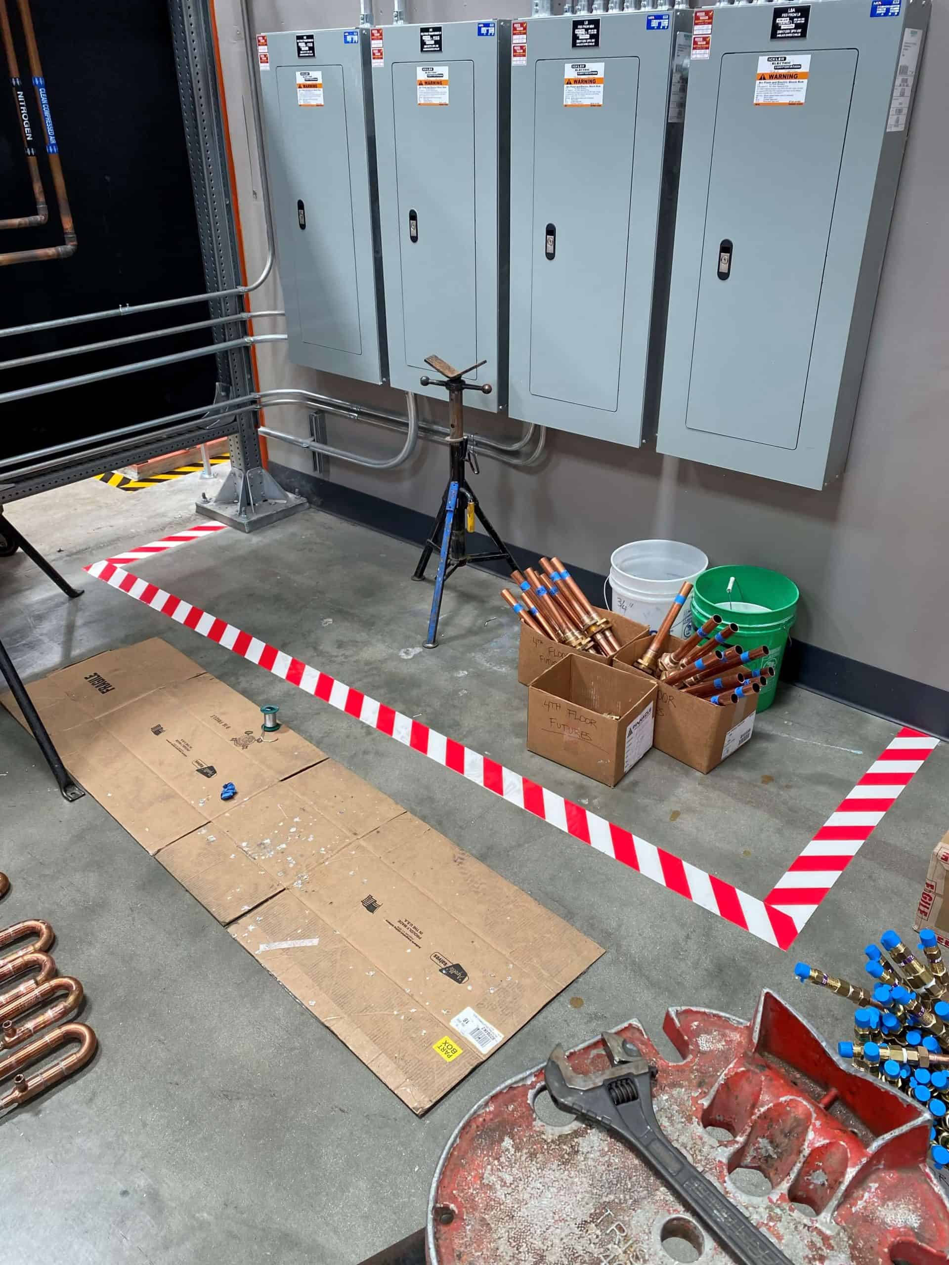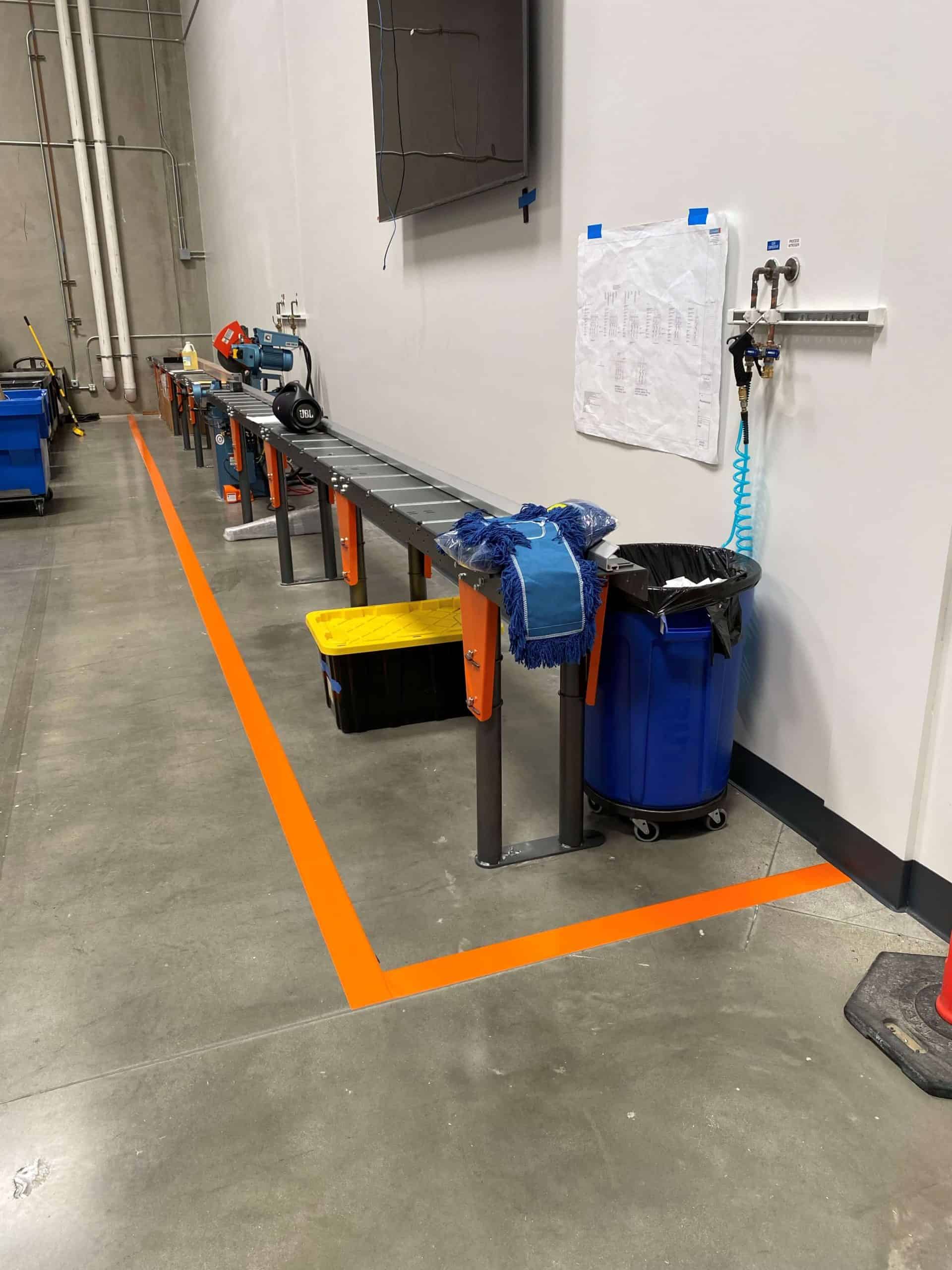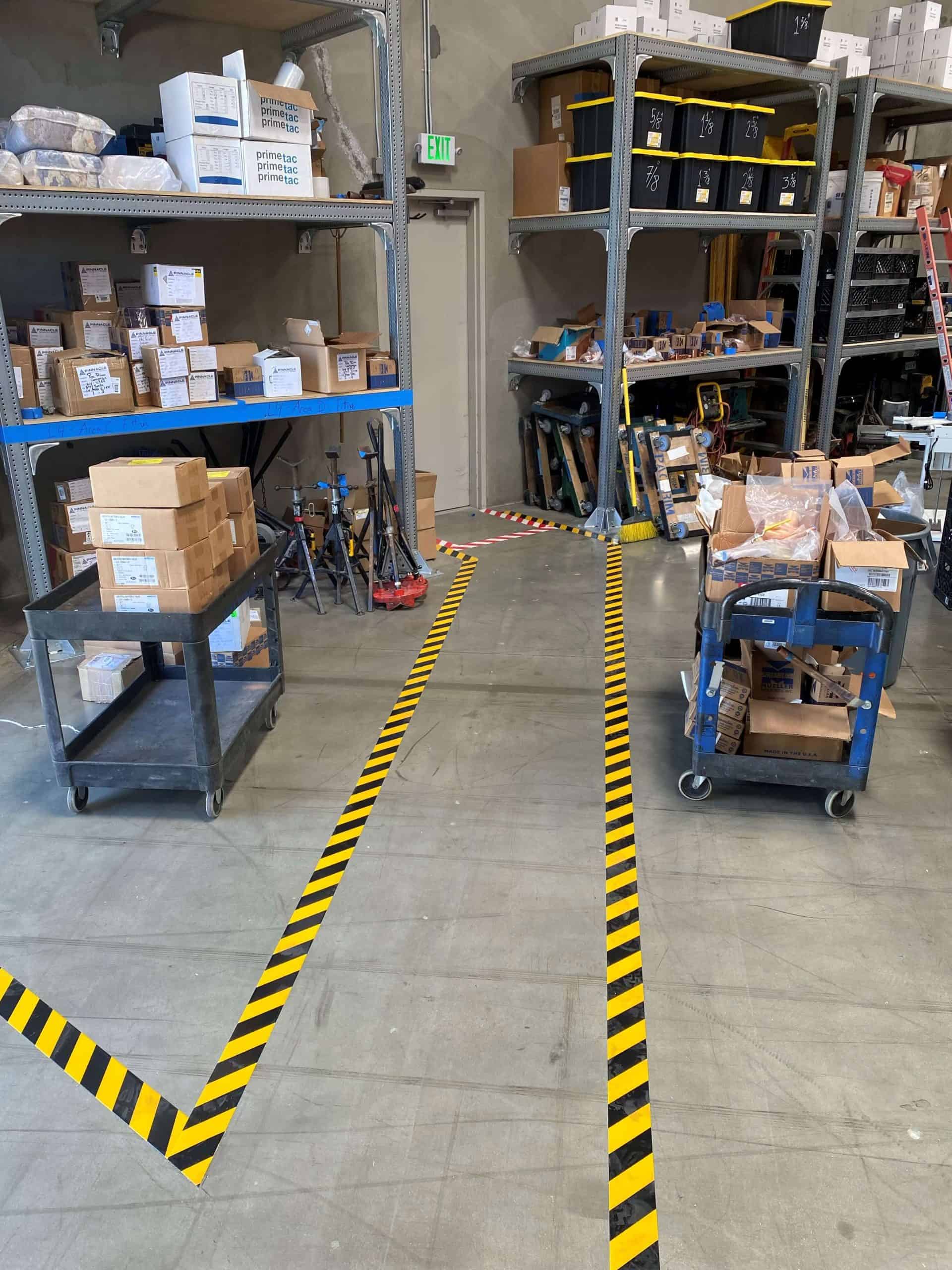 Floor striping marks floor areas to organize your floor space, mark storage areas, and keep travel areas safe for both foot traffic and equipment operators.