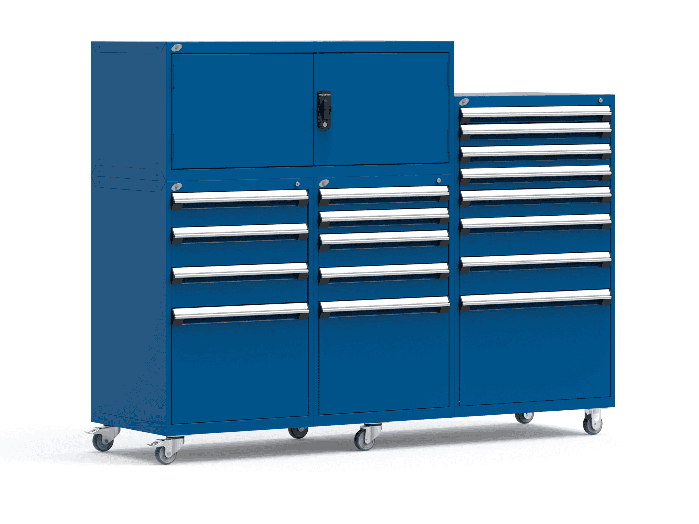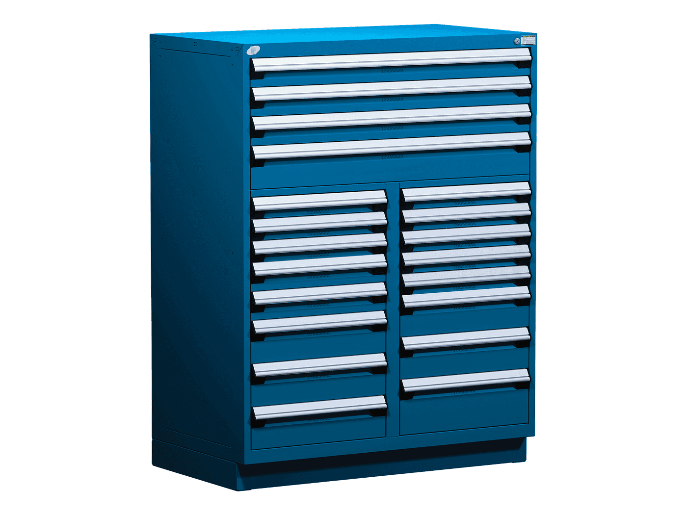 Rousseau offers a wide variety of stationary and mobile toolboxes with drawers and custom drawer inserts to organize different types of tools and tool parts.